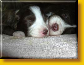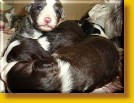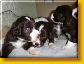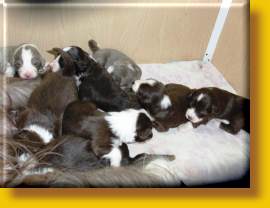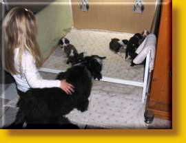 Die Welpen sind super gut drauf, erkunden die Wurfkiste