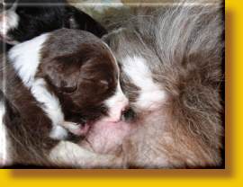 Sie schlabbert sie dann immer ab und die Welpen zuppeln